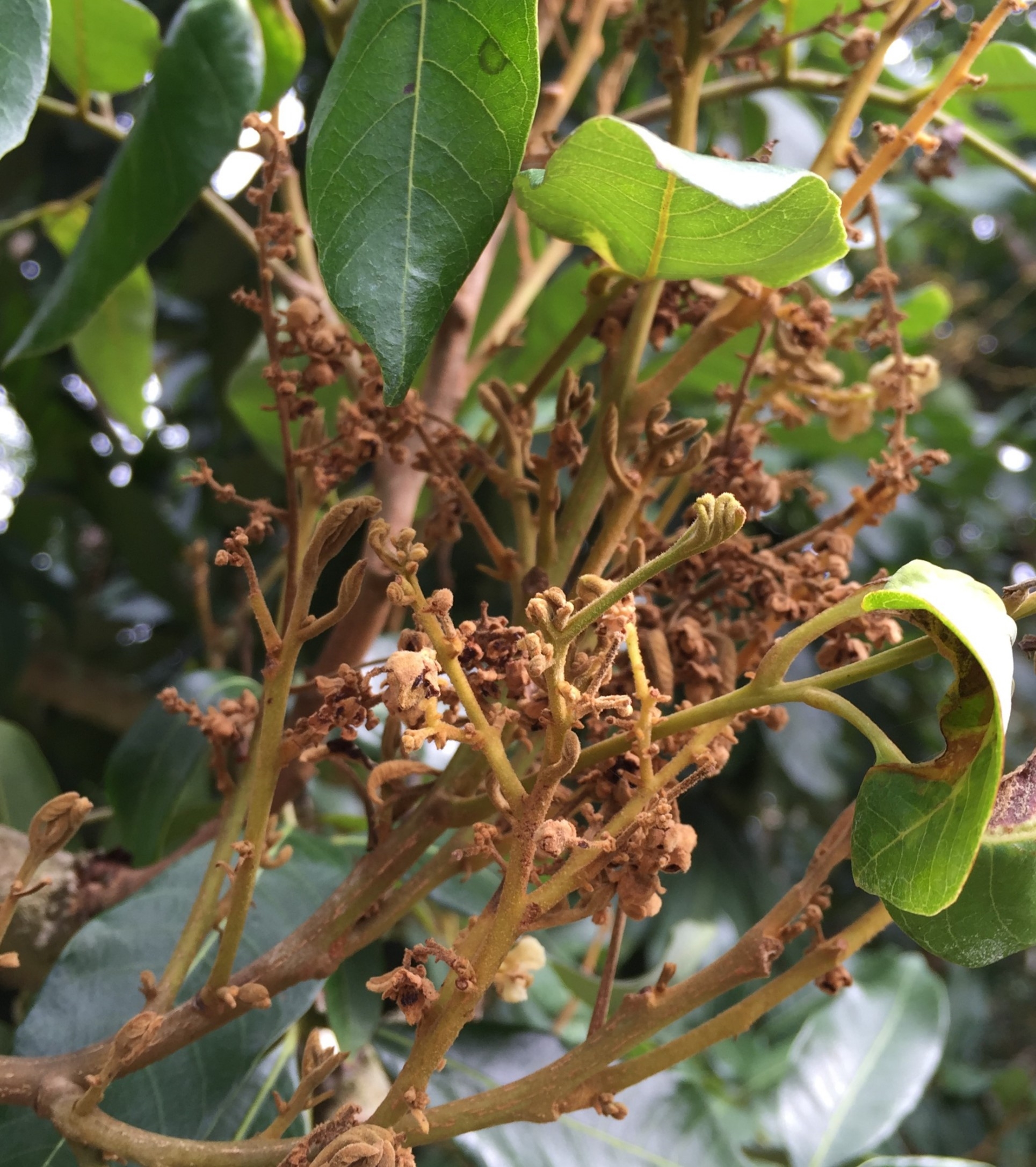 ไรกำมะหยี่ลำไยเป็นพาหะของเชื้อไฟโทพลาสมา ซึ่งช่อใบที่ถูกทำลายนี้จะมีก้านช่อที่แตกเป็นพุ่ม เป็นกระจุก มีข้อปล้องสั้นคล้ายพุ่มไม้กวาด ส่วนช่อดอกหลังจากที่ถูกไรเข้าทำลายดอกจะแห้งและร่วงเหลือแต่ก้านช่อเป็นพุ่มสีน้ำตาลแห้งทำให้ลำไยไม่สามารถติดผลได้หรือติดผลได้น้อยซึ่งเป็นสาเหตุที่มาของโรคพุ่มไม้กวาดหรือโรคพุ่มแจ้